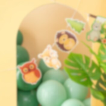 Dekorativ girlang av papp, utsmyckad med härliga motiv av skogsdjur. Underbar att hänga upp när det är kalas med skogstema.