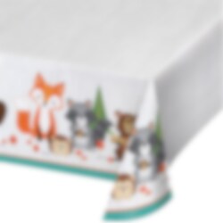 Stor bordsduk av plast i härliga färger med snyggt motiv på djuren och skogen från temat Woodland Animals. Ett perfekt komplement till ditt kalas med djurtema. Duken är ca 137 x 259 cm stor.