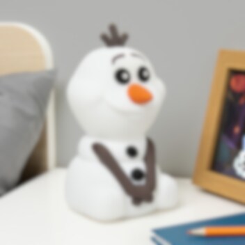 Låt den charmiga snögubben Olof lysa upp rummet. Lampan är tillverkad i mjuk silikon och föreställer Olof från Frost med sitt glada leende. Den sprider ett varmt och behagligt sken och har tre ljuslägen som enkelt ändras genom att trycka på huvudet. En inbyggd timer stänger av lampan automatiskt efter en stund. Perfekt vid sagostund och läggdags, eller som en rolig inredningsdetalj för alla som älskar Olof och Disney Frost.