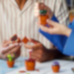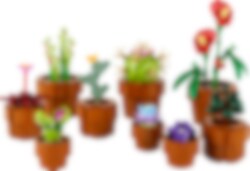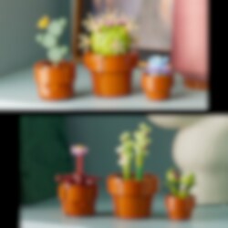 Låt din kreativitet växa med byggprojektet LEGO® Icons Små växter (10329) för vuxna. Bygg 9 växtmodeller baserade på torktåliga, tropiska och köttätande arter, var och en i en byggbar, terrakottafärgad blomkruka. Välj olika modeller för enkel, medelsvår och svår byggnivå, och gör rummet vackrare med en färgglad och modern uppvisningsmodell.