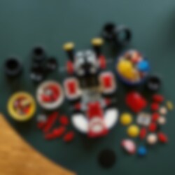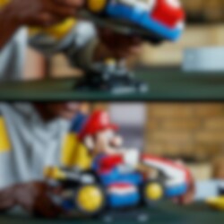 Visa upp din kärlek till tv-spelsserien Mario Kart med denna detaljerade bygg- och uppvisningsmodell. Ändra ställning på Marios huvud och armar när han sitter i sin Standard Kart. Placera din skapelse på visningsstället och ställ fordonet i en dynamisk vinkel som om det körs i hög fart eller sladdar. Setet är en perfekt rumsprydnad för vuxna fans av Mario Kart.