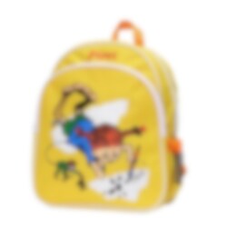 Gul Pippi-ryggsäck för små vardagsäventyrare! Den är lagom stor för mindre barn och passar perfekt till utflykter, gympapåse, övernattning eller lekar i trädgården.