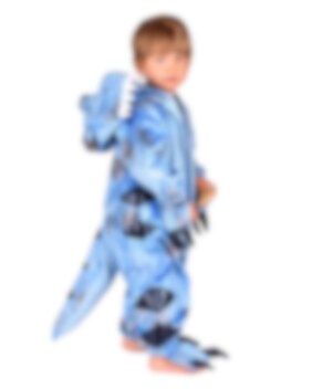- Innehåller: Jumpsuit i ljusblå färg med svarta detaljer som föreställer en T-Rex.