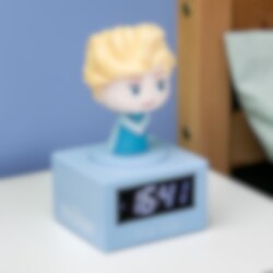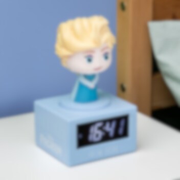 Vakna till tonerna från Frost-filmen med denna magiska Elsa-väckarklocka! Klockan är 17 cm hög och har både ljud- och ljusfunktion, Elsa lyser upp i vackert sken samtidigt som musik från filmen spelas när alarmet går.
