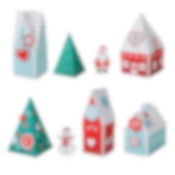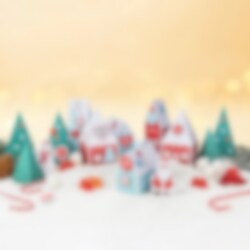 Skapa din egen magiska tomteby med denna DIY adventskalender! Setet innehåller ett block med färdigtryckt papper som du viker ihop och skapar hus, granar och tomtar med. De varierar i storlek från 5 cm till 14 cm, och du får även med 24 nummer samt dekorationer att fästa på husen. Allt är tillverkat av papper, vilket gör det både lätt och miljövänligt.
