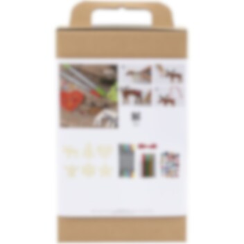 Skapa egna färgglada juldekorationer med detta kreativa pysselkit! Här kan barnen måla och dekorera fina julfigurer i trä – som granar, hjärtan, stjärnor och renar. Använd glitterlim, strass och tuschpennor för att ge varje dekoration en personlig touch.