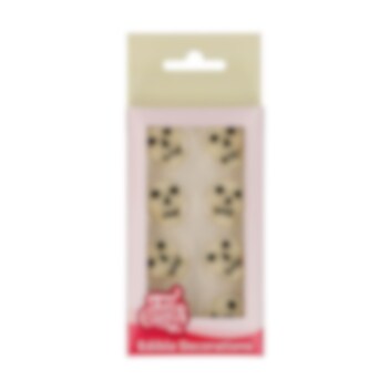 8 st. sockerdekorationer föreställande coola dödskallar. Dekorera dina bakverk med dessa när det är dags för Halloween.