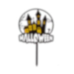 Ge halloweenkakan en riktigt spöklig känsla med denna dekorativa tårtdekoration i form av ett hemsökt hus. Den svarta siluetten mot de lysande gula fönstren och den klassiska "Halloween"-texten skapar en effektfull detalj som gör att tårtan direkt blir festens mittpunkt. Perfekt för både barnens kalas och vuxnas halloweenfester.