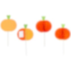 12 st. snygga cupcake toppers tillverkade av plast och honeycomb som föreställer orangea pumpor. Utmärkta att dekorera muffins/cupcakes med lagom till Halloween. Toppers är ca 8 cm höga.