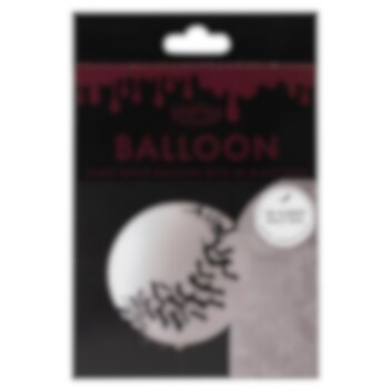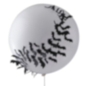 En imponerande vit ballong som dekoreras med svarta pappfladdermöss i olika storlekar för en snygg 3D-effekt. En riktig showstopper på Halloweenfesten som garanterat drar blickarna till sig.