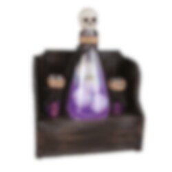 Cool animerad Halloweendekoration som föreställer en hylla fylld med kusliga trolldrycker, skelett och ögon. En imponerande detalj till ditt Halloweenfirande.