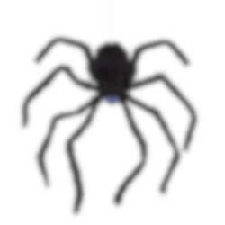 Svart spindel som åker upp och ner längs ett snöre, blinkar med ögonen samt ger ifrån sig ett otäckt skrattande ljud när den är aktiverad. Skräm slag på dina vänner med denna när det är dags för Halloweenfest. Produkten är batteridriven och kräver 3 st. AAA batterier (ingår ej). Spindeln är ca 80 cm stor inklusive benen.