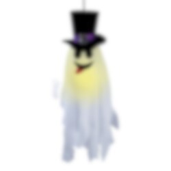 Coolt lysande spöke med en svart tophatt som blir en tjusig dekoration att ta fram när det närmar sig Halloween. Spöket är 50 cm högt och har inbyggt batteri.