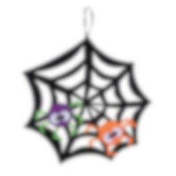 Svart spindelnät med motiv av två färgglada spindlar som blir en tjusig dekoration till Halloween. Spindelnätet är tillverkat av filttyg och är 33,5 cm i diameter.