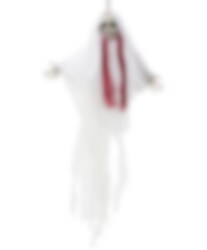 Hängande och mycket dekorativ dekoration av en spökflicka med rött hår. Tillverkad av plast och polyester. Längd ca 60 cm.