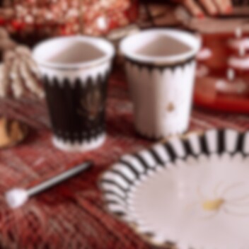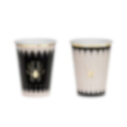 Duka med eleganta pappmuggar för en stämningsfull Halloween. Varje mugg pryds av en skimrande guldspindel och har en dekorativ kant med guldfolie som ger en exklusiv känsla. Setet innehåller två olika designer som matchar övriga produkter i serien.