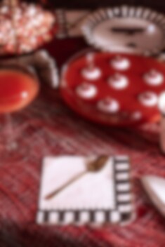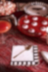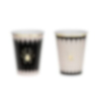 Skapa en elegant Halloweendukning med dessa stilfulla pappersservetter. Den dekorativa kanten har svarta ränder som avslutas med en guldfoliebård, vilket ger en lyxig kontrast mot den mjuka bakgrundsfärgen. Perfekta att kombinera med tallrikar och muggar i samma serie.