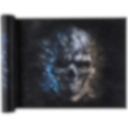 Svart bordslöpare med dekorativa Haunted Halloween-mönster, utsmyckad med coola dödskallar. Perfekt dekoration till bordet när du ska anordna en Halloween-fest.