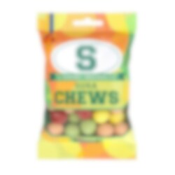 S-Märke Sura Chews är sega karameller med syrligt innehåll och god fruktsmak. Vikt: 70 gram.
