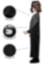 - Innehåller: En jumpsuit med tillhörande skoöverdrag, ett bälte, en mantel och en mask tillverkad av hårdplast. (Ljussabel ingår ej).