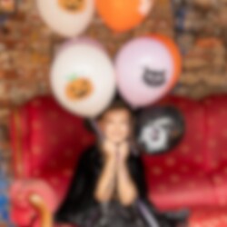 Ge Halloweenkalaset en lekfull och lagom kuslig touch med dessa färgglada latexballonger. Setet innehåller åtta ballonger med olika tryckta motiv, perfekta för att sätta rätt stämning. Ballongerna kan fyllas med helium eller luft och passar både inomhus och utomhus.