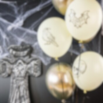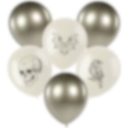 Dekorera stilfullt till Halloween med dessa vackra latexballonger. Setet innehåller sex ballonger med olika tryckta motiv, perfekta för att sätta rätt stämning. Ballongerna kan fyllas med helium eller luft och passar både inomhus och utomhus.