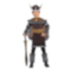 Viking Maskeraddräkt inkluderar en tunika, en cape, ett par benvärmare och en mjuk huvudbonad som efterliknar en klassisk vikinghjälm.