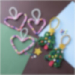 Skapa färgglada juldekorationer med detta roliga pysselkit! Här kan barnen forma glittrande hjärtan och små julgranar av piprensare, pärlor och paljetter, ett enkelt och kreativt sätt att pyssla tillsammans under advent.