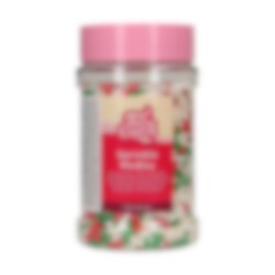 Med denna juliga strösselmix i färgerna röd, grön och vitt kan du snabbt och enkelt dekorera cupcakes och kakor för att göra dem redo för julfesten.