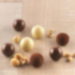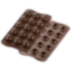 Gör vackra fyllda praliner och chokladbollar med denna smidiga chokladform från Silikomart. Denna form innehåller 15 st. runda hål och är lämplig för ugn, kyl, frys och kan diskas i diskmaskin.