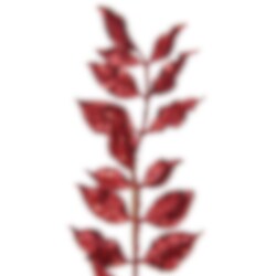 Lyxig gren med bladverk i glittritrande röd färg som blir en snygg dekoration till fester och högtider. Grenen är ca 13 x 80 cm stor och är böjbar. En perfekt dekorationen i jultider eller varför inte ha den som dekoration till Alla Hjärtans Dag. Tillverkad av polyester.