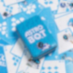 Korten levereras i en tålig metallask med Astro Bot-loggan på locket, perfekt att ta med på resor, till spelkvällar eller att ge bort som present till ett animefan.
