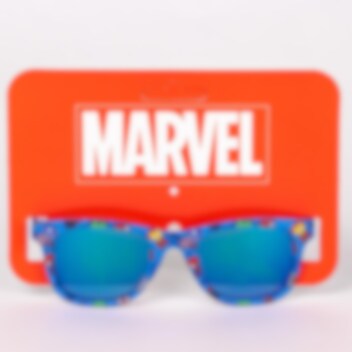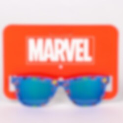 Premium solglasögon till barn med tuffa och roliga motiv från Avengers. På bågarna runt de tonade glasen finns superhjältarna Spiderman, Captain America, Hulken och Iron Man återgivna.