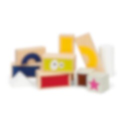 Träklossar är klassiska leksaker som stimulerar barnens fantasi och utvecklar koordinationsförmågan. När barn babblar, pratar, sjunger och leker tillsammans med Babblarna, utvecklar de också sitt eget tal och språk. Vad ska ni bygga av era klossar? De olika formerna och färgerna ger oändliga lekmöjligheter! FSC-märkt trä.