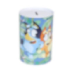 Sparbössa med ett vackert motiv av Bluey och Bingo Perfekt som present till alla Bluey-fans! Observera att sparbössan inte kan öppnas, så pengarna är säkra tills det är dags att tömma den.