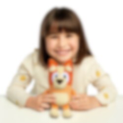 Gulligt gosedjur föreställande Bingo, Blueys charmiga lillasyster från den populära TV-serien Bluey. Gosedjuret är 20 cm högt och tillverkat av mjuk polyester, vilket gör det perfekt både för gosiga stunder och som en fin dekoration i barnrummet.