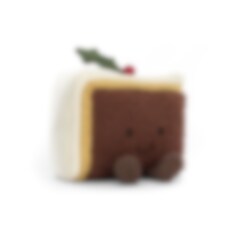 En frestande bit gosig jultårta som du aldrig kommer vara för mätt för. Denna kramgoa bit har fluffig brun kaka med både glasyr och marsipantäcke samt dekorationer i form av ett löv och ett rött bär, för att inte tala om det glada leendet och de små roliga benen - en tårta att älska. Tillverkad av 87% polyester, 13% bomull och handtvättas vid behov.