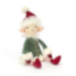 En mysig liten julkompis i form av en av tomtens hjälpsamma alver. Klädd i sin klassiska julklädsel med en röd luva, grön kappa med guldknappar, röd-vit randiga byxor samt röda vantar och stövlar, allt med fluffiga vita kanter eller dekorationer, sprider denna lilla nisse julstämning var hen än är. Tomtens medhjälpare och din nya vän med stiliga spetsiga öron i alvmodell och ett litet leende samt rosiga kinder efter att ha lekt länge i snön och haft riktigt kul.Tillverkad i polyester och handtvättas och plan- eller hängtorkas.
