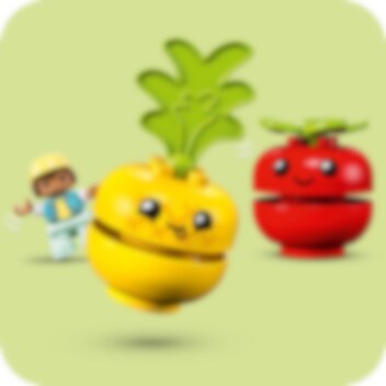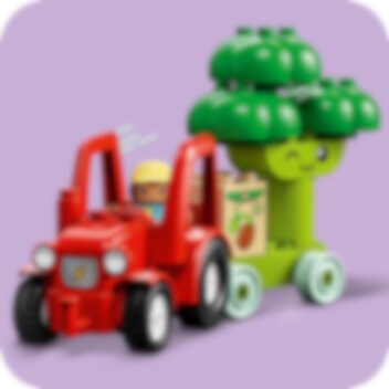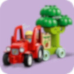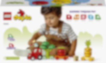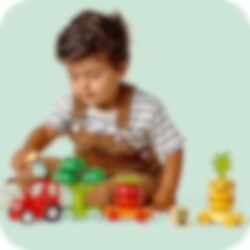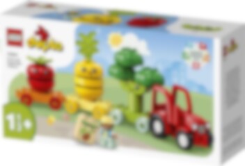 LEGO® DUPLO® Min första frukt- och grönsakstraktor (10982) erbjuder massor av roliga sätt att utveckla små barns lärande. Förskolebarn följer med bonden när han skördar frukt och grönsaker med den körbara traktorn och 3 släp. Barn från 18 månader kan finslipa sin finmotorik samtidigt som de lär sig hur frukt och grönsaker gror och genom att stapla klossarna för att få växterna att "växa". De kan även ha roligt med sortering - förskolebarn kan matcha grödan med släpets färg eller använda sin kreativitet och sitt självuttryck och blanda färgerna eller byta ut ansiktena! Pedagogiska leksaker som gör inlärning roligt Alla LEGO DUPLO leksaker är smart utformade med roliga berättelser, klara färger, engagerande karaktärer och massor av detaljer för att utveckla tidiga färdigheter hos små barn. Detta set kan kombineras med de andra lekseten i serien Min första ekologiska och alla andra LEGO DUPLO modeller.