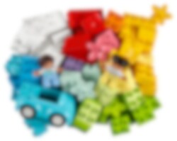 En rolig och pedagogisk leksak full med klossar och delar som uppmuntrar små barn att utforska praktisk kreativitet och fantasifull lek. Välbekanta föremål stimulerar unga sinnen och färgglada former bjuder in till fritt byggande, vilket gör att detta LEGO® DUPLO® startset är perfekt för att inspirera alla unga byggare. Pedagogisk leksak för små barn! I den robusta förvaringsboxen hittar du en bil med rörliga hjul, ett tak, ett fönster, blommor, bröd, DUPLO figurer, klossar numrerade med 1, 2 och 3 ... och massor av originalklossar i regnbågens alla färger. När föräldrar delar glädjen i att kombinera klossarna till oändliga, fantasifulla lekmöjligheter får de också uppleva sin lilla byggares utvecklingsmässiga milstolpar. Perfekt present till förskolebarn! DUPLO lekset sätter fri lek och uttryckande av egna känslor i händerna på blivande byggare. Med färgglada, lätthanterliga delar som sätter fart på små barns fantasi och klossar som är säkra, rena och lätta att ta med överallt.