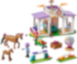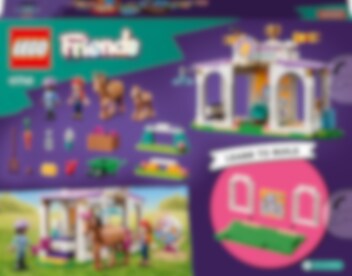 Barn från 4 år som älskar hästar och att ta hand om djur kan hitta på massor av fantasifulla berättelser med byggsetet LEGO® Friends Hästträning 41746 med ett stall. Leksetet hjälper barn att lära sig bygga och innehåller minidockorna Aliya och Mia plus 2 hästkaraktärer och tillbehör för kreativ lek. Barn kan utforska vänskapen mellan Aliya och hennes väns mamma, Mia, medan de lär känna varandra bättre genom sin gemensamma kärlek till hästar. Inspirera nya byggare LEGO 4+ set är utformade för att ge barn en snabb och rolig byggupplevelse. Varje set innehåller en användbar startkloss – en robust bas som barn kan skapa scenen på. Låt appen LEGO Builder guida dig och ditt barn på ett intuitivt byggäventyr, där ni kan zooma in och rotera modeller i 3D, spara set och hålla reda på era framsteg. Välkommen till Heartlake Citys nästa generation Barn kan träffa nya vänner, upptäcka spännande platser och iscensätta verkliga äventyr i LEGO Friends världen.
