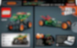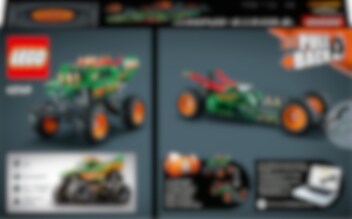 Kan du hantera pulsen i Monster Jam? Det är dags att testa vad du kan med setet LEGO® Technic Monster Jam Dragon. Bygg bilen, med grymma draktaggar, horn och elddetaljer. Dra den sedan bakåt för att skicka iväg den i full fart – eller gör några coola trick som en riktig tävlande! När det är dags för något nytt kan du bygga om monstertrucken till en krokodilbuggy.