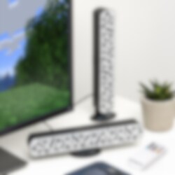 Coola lampor med motiv från populära Minecraft, komplett med en tillhörande fjärrkontroll. Perfekt prydnad för alla Minecraft-fans! Lamporna har tre olika ljuslägen: musikreagerande, färgpulserande och ett läge där du kan välja färg. De är är 25 cm höga och drivs av medföljande USB-kablar, medan fjärrkontrollen kräver 2 AAA-batterier (ingår ej).