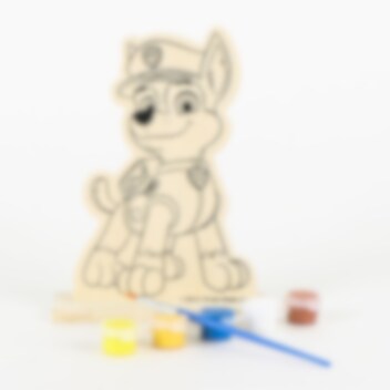 Ge dig ut på uppdrag med Chase från Paw Patrol, nu som målarvänlig träfigur! Medföljer gör både färger och pensel, så barnen kan skapa sin egen hjälte direkt hemma vid pysselbordet. Perfekt aktivitet för små fans av den modiga polisvalpen, oavsett om det är kalas eller lugn hemmastund.