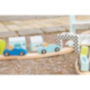 Riktigt cool racerbana med tillhörande bilar som du och dina vänner kan leka och även tävla och se vem som kommer först i mål. En kul leksak till dopbarnet. Förpackningen inkluderar: