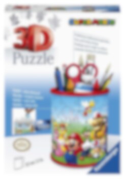 3D pussel i form av ett pennställ med Super Mario motiv som färdigbyggt kan användas som prydnad på ditt skrivbord. 3D pusslet är ca 9 cm högt. Till detta pussel behövs inget lim utan det är bara att bygga.