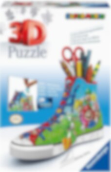 3D pussel med Super Mario motiv på en sneaker som färdigbyggt kan användas som pennställ på ditt skrivbord. 3D pusslet är ca 21 x 12 x 8 cm stort. Till detta pussel behövs inget lim utan det är bara att bygga.