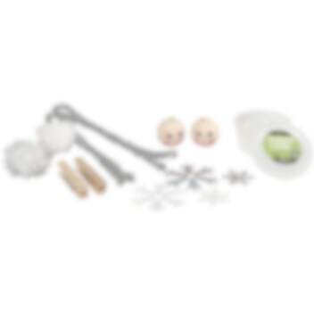 Skapa två söta små änglar att dekorera med i jul! Det här pysselkitet innehåller allt du behöver för att tillverka glänsande änglar med klädnypor som fötter, en charmig detalj till granen, julbordet eller nissens dörr.