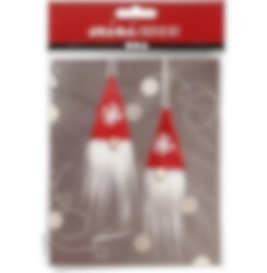 Materialset/kit till 2 sydda nissar som kan hängas, med långt skägg och luva i velour. Beskrivning medföljer.