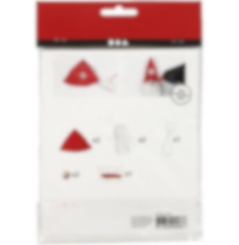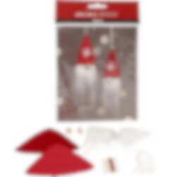 Innehåll: Utstansad röd velour, skägg, träpärlor samt tråd. Beskrivning medföljer. Storleken avser den färdiga produktens mått..